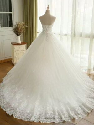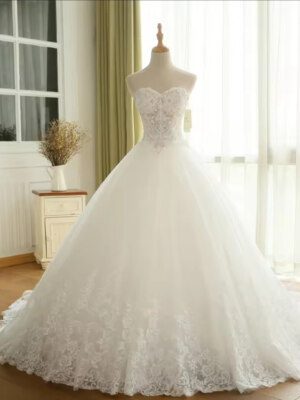 Encante-se com o vestido de noiva modelo princesa deslumbrante, que combina elegância clássica e detalhes artesanais.
