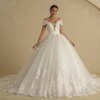Disponível nas cores branco ou marfim, é a escolha perfeita para noivas que desejam um visual majestoso e romântico no grande dia.